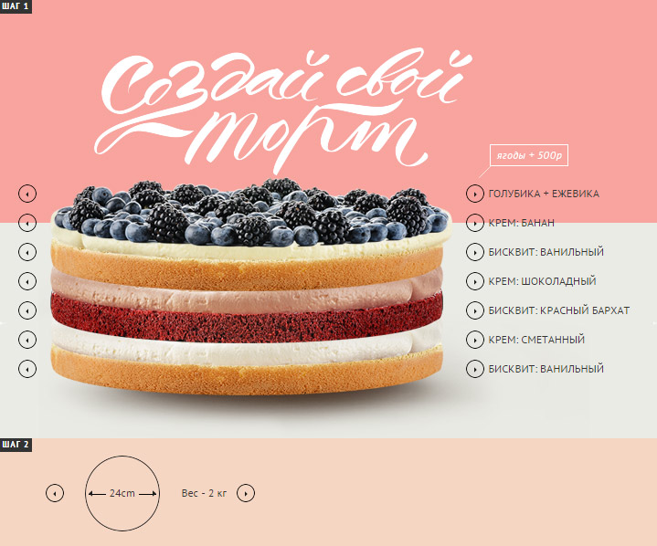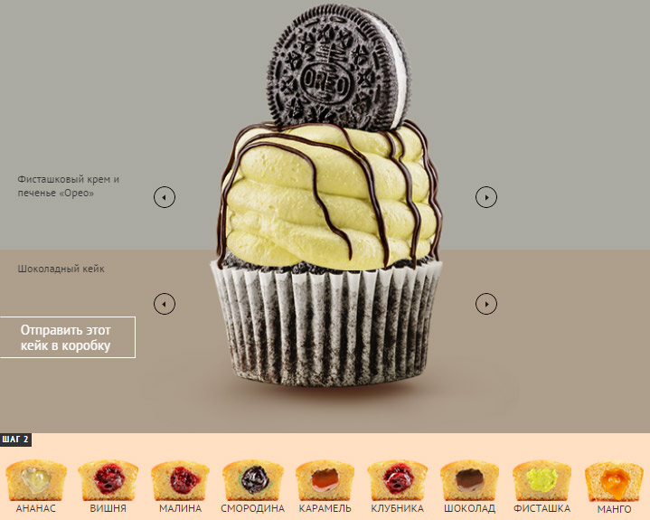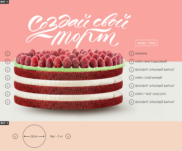 Не обязательно брать готовый торт. Почувствуй себя кондитером: хочется фисташку с бананом и красной смородиной? Ну, а почему бы и нет? Тоже самое с капкейками и макарунами. Можно потыкать пальцем на сайте или посмотреть фотки снизу.